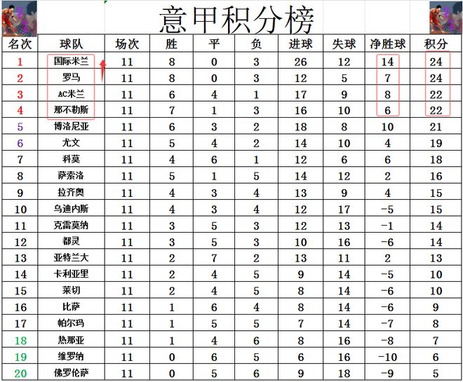 積分榜方面,國米和羅馬今天都贏了球,這樣的話他們就都超過了輸球的那不勒斯和本輪打平的AC米蘭,國米憑借著凈勝球優勢力壓羅馬登頂,羅馬屈居第2。那不勒斯完敗后,不僅被國米,羅馬超過,還因凈勝球劣勢,被AC米蘭躺著超過,跌到第4。